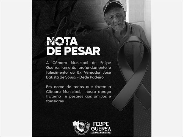 Câmara Municipal de Felipe Guerra, lamenta profundamente o falecimento do ex- vereador Dedé Padeiro (José Batista de Souza).